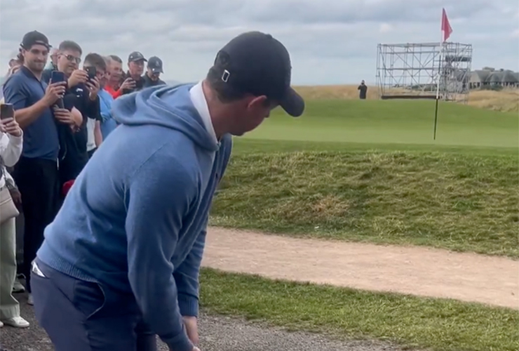 Relatable is an overused term when it comes to describing poor shots from tour pros, but it’s quite fitting here. We’d all pull out putter if we found ourselves in this situation, and we’d all pop it straight up and have a laugh like McIlroy did here. Fortunately for McIlroy, this was just a nice casual round and this shot ultimately didn’t matter. Unfortunately for McIlroy, he can’t just have a nice casual round without the camera phones being out to capture every little moment from it.