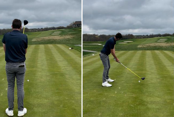 “Practice swings are a different motor skill because it’s single object manipulation (the club). The real swing is double object manipulation (club and ball),” he says. “Practice swings are good if it’s reminding you of a feel. The problem comes when people compare the two and expect good ball striking outcomes from a good feel or look of a practice swing.”