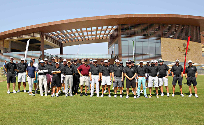 The classic pre- tee-off group shot on the lawn in front of the Trump Dubai clubhouse.