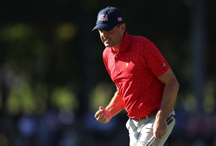 In the second game, Tom Kim made a late push to erase a two-hole deficit to Sam Burns, but Burns held on to earn a half-point to complete a 3-0-1 performance and finish the week as the only unbeaten player on either team. Russell Henley then closed out Sungjae Im, 3 and 2 and Patrick Cantlay subdued Canada’s Taylor Pendrith 3 and 1.
