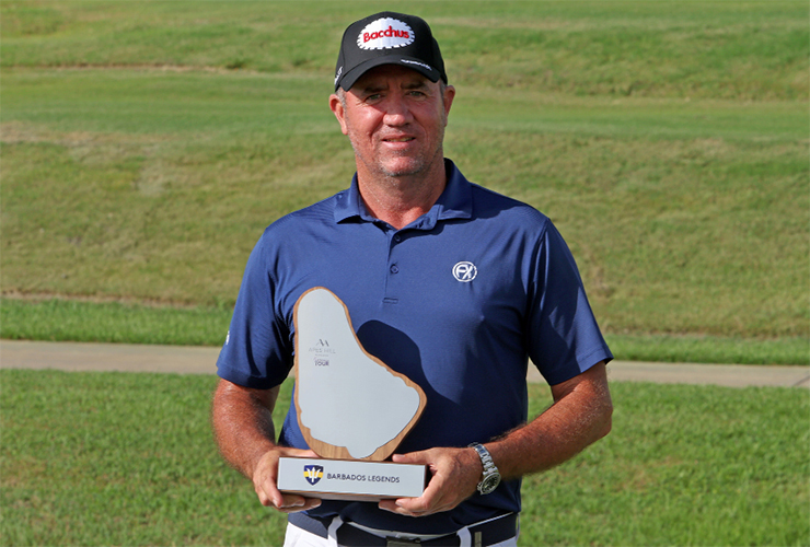 Scott Hend has won the Barbados Legends, hosted by Ian Woosnam, on 11-under-par after a spectacular final-round 64 gave the Australian a two-shot victory and a second Legends Tour title.