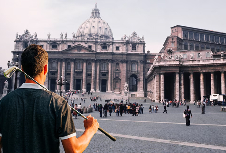 That’s a hell (sorry, Pope) of a good pitch, but it makes sense that the Vatican turned down the request. It just doesn’t feel right to be preserving, interpreting and teaching the faith with Cardinals shouting “fore” at all hours of the day.